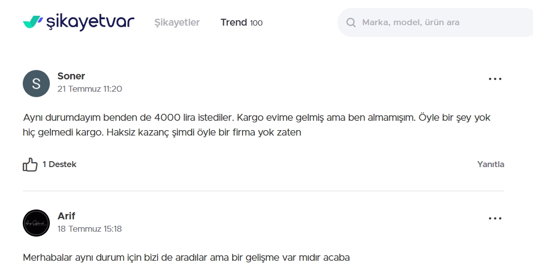 “Sipariş vermediğim ürün için icra takibi başlatılacağını söylediler. 6.500 TL istediler.”