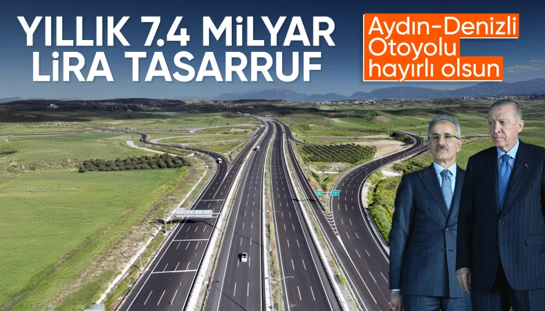Aydın-Denizli Otoyolu’nun açılışında konuşan Cumhurbaşkanı Erdoğan, eski yolda yaklaşık 2 saat süren Aydın ile Denizli arası seyahat süresinin yeni otoyolla birlikte bir saatin altına ineceğini söyledi. Erdoğan, yeni otoyolla yılda 7,4 milyar lira tasarruf sağlanacağını anlattı.