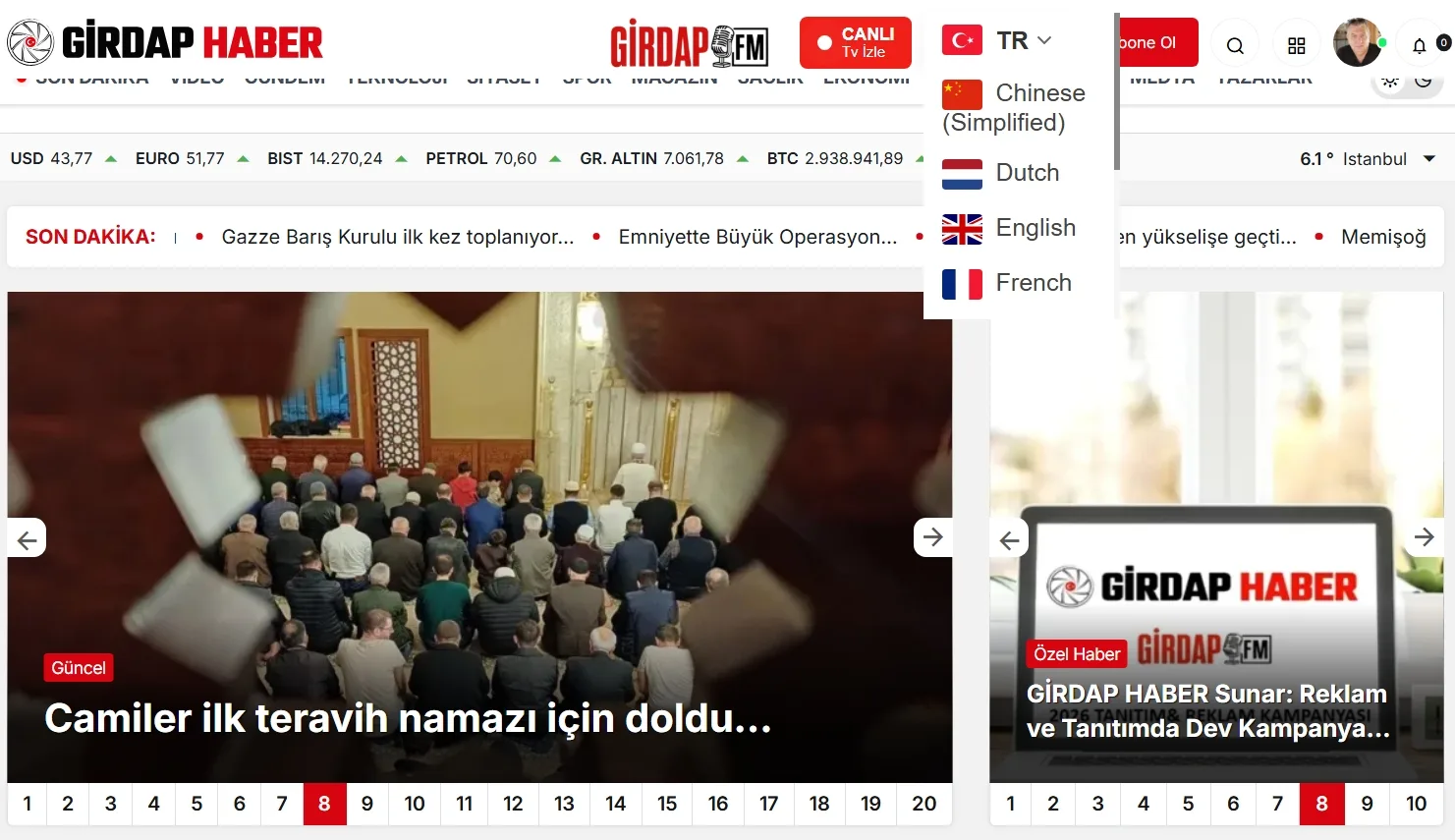 GİRDAP HABER, artık dünyanın her yerinden tüm dünya dilleriyle okunabilen, evrensel bir yayın merkezidir.”