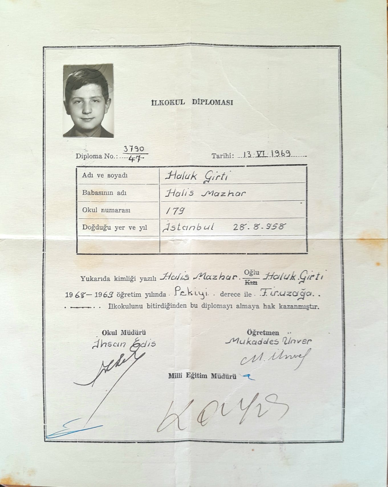 Bu Aşağıda ki Diploma Benim, İlk Okul Mezunuyum Ama En Azından Sahtekar Değilim… Yüreği Olanlar Benim Gibi Diplomasını Deşifre Etsinler. HODRİ MEYDAN!