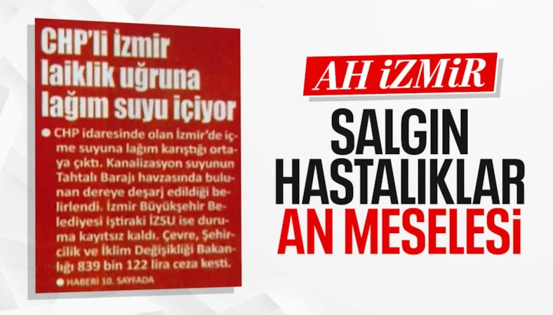 Gaziemir Sarnıç Hürriyet Mahallesi’ndeki İZSU Atık Su Pompa İstasyonu’ndan taşan kanalizasyon sularının, şehrin en kritik içme suyu kaynağı olan Tahtalı Barajı havzasına deşarj edildiğinin tespit edilmesiyle Çevre Şehircilik ve İklim Değişikliği bakanlığı tarafından İZSU’ya 839 bin 122 TL para cezası uygulandı.