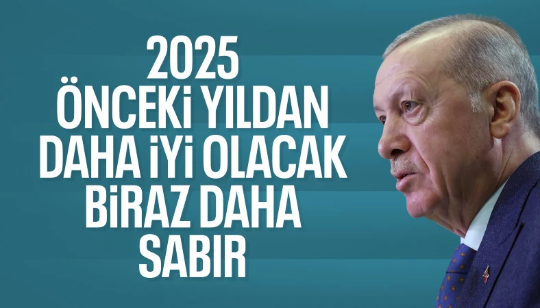 Cumhurbaşkanı Erdoğan, 2025 yılının ekonomik anlamda 2024 yılına göre daha iyi olacağını söylerken ülkenin biraz daha sabır biraz daha gayretle çok daha güzel neticeler göreceğinin altını çizdi.