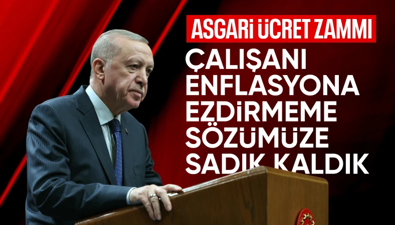 Konuşmasında gündeme dair konulara değinen ve yılın değerlendirmesini de yapan Cumhurbaşkanı Erdoğan, dün belirlenen asgari ücrete de değindi.