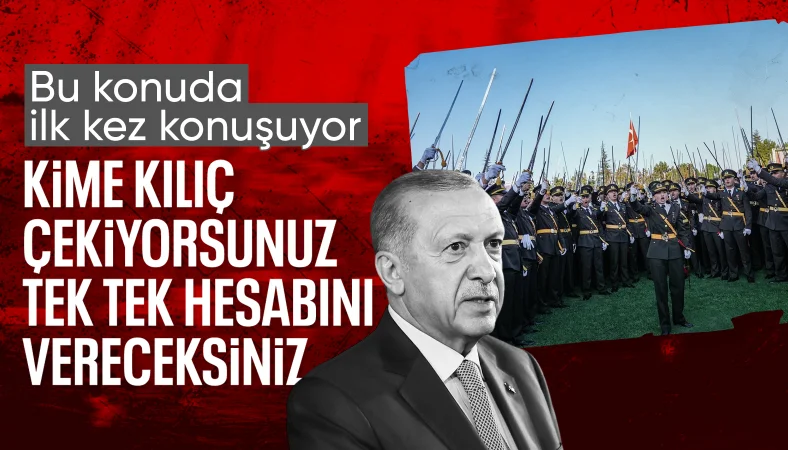 “Kahraman ordumuzun kahraman mensuplarıyla her zaman gurur duyuyoruz. Ordumuzun tekrar yıpratılmasına izin vermeyiz. Geçenlerde malum mezuniyet töreninde bazı istismarcılar ortaya çıkmak suretiyle kılıçlar çektiler. Bu kılıçları kime çekiyorsun?