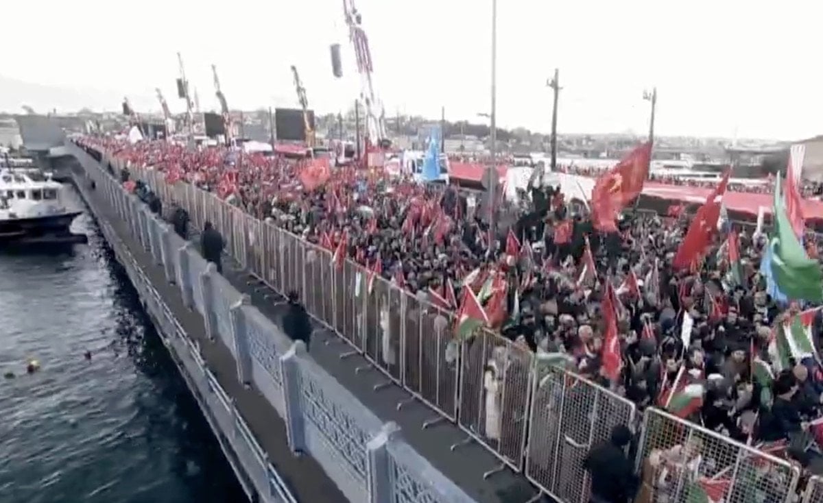Yüz binlerce insanın katılım gösterdiği eylemde, Gazze için sloganlar yükseldi.
