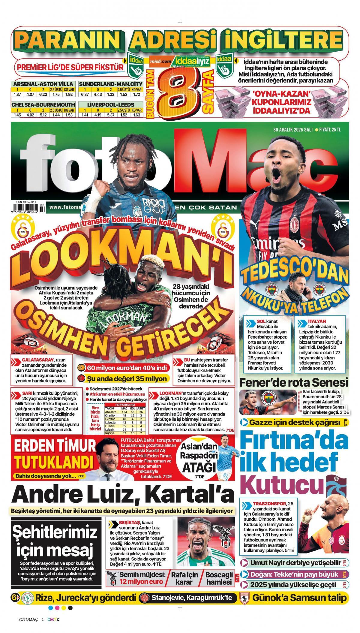 Fotomaç Gazetesi 31 Aralık 2025 Günü Gazete Manşetleri