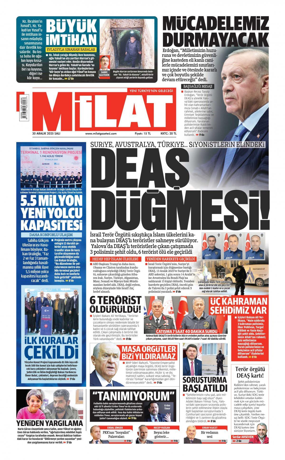 Milat Gazetesi 31 Aralık 2025 Günü Gazete Manşetleri