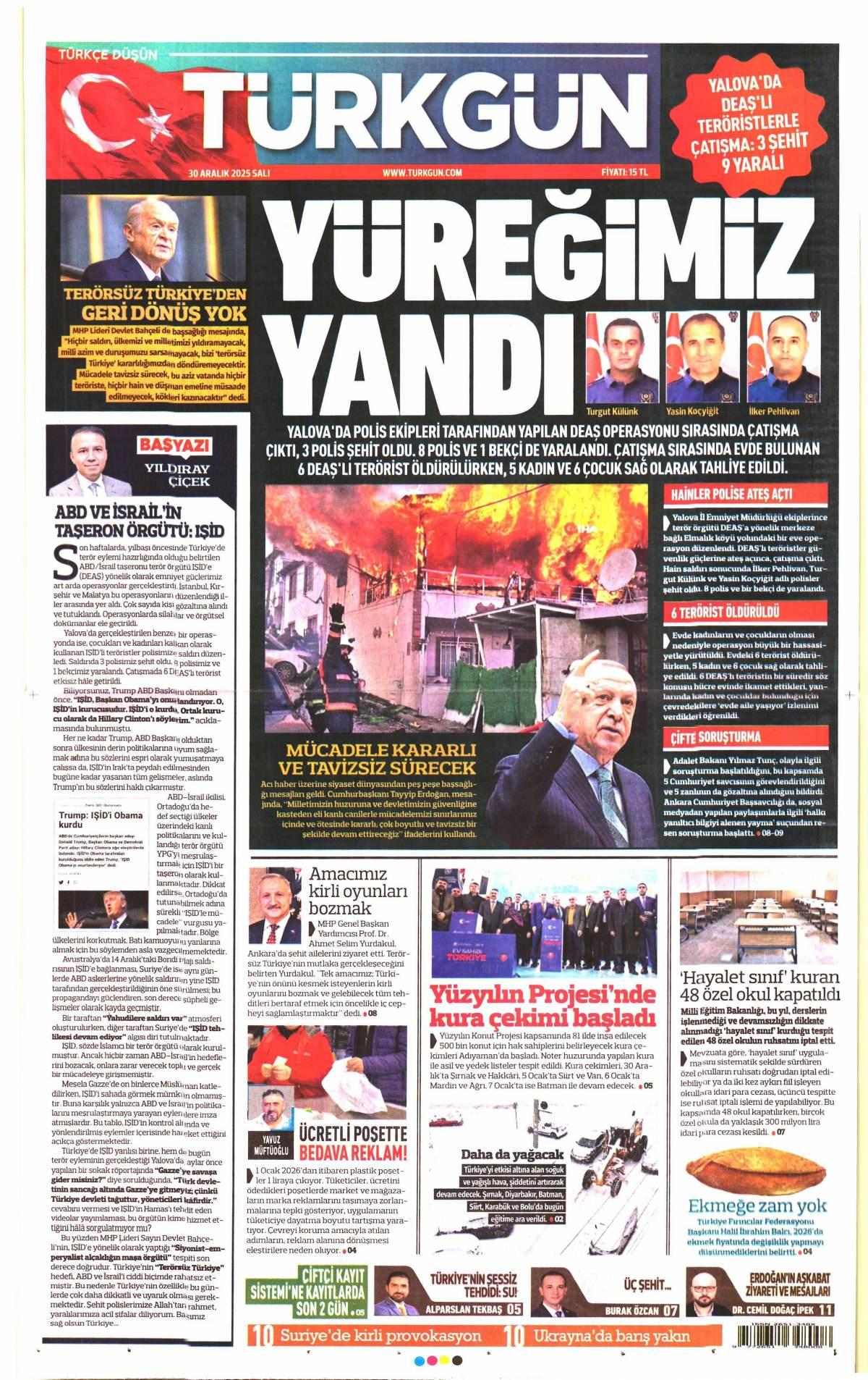 Türkgün Gazetesi 31 Aralık 2025 Günü Gazete Manşetleri