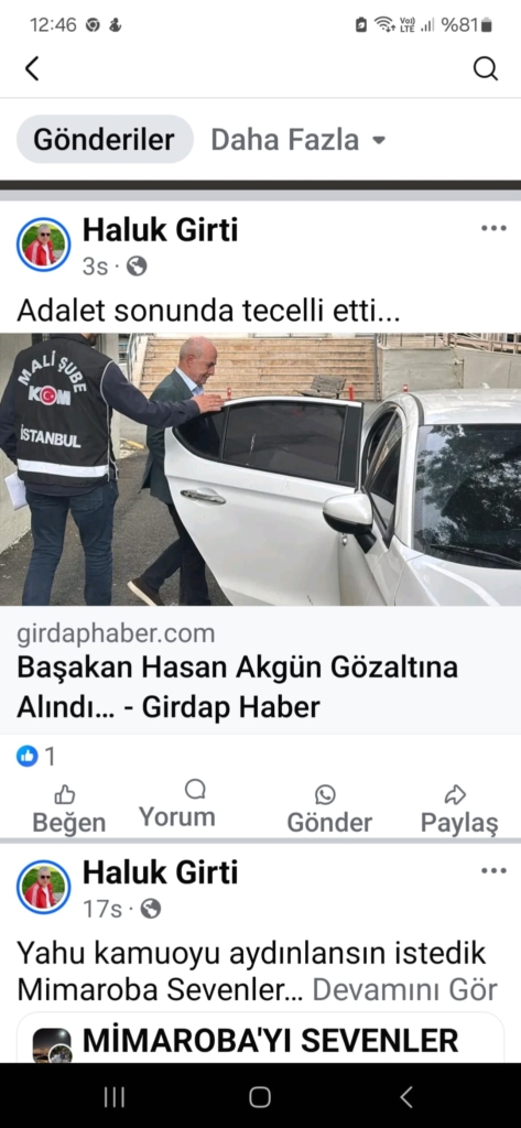 Şimdi operasyon oldu başkanları göz altına alındı benim aylar önce başkanın kendi telefonuna yazdığım serzenişimi şimdi akıllarınca bana koz olarak kullanıyorlar. Yani düne kadar başkandan yardım ve destek talebinde oldu, şimdi başkan göz altına alındı böylemi yazılması gerekiyordu gibi anımsatma yaptı aklı sıra basın danışmanı Ümit Ersoy denen şahıs. Ben sanki yazdığım yazıda başkanına şantaj yapmışım başkandan habedullah bir şey istemişim, yazdığım yazı ortada mazeretimi kısaca anlatmışım, onu da niye anlattım, annem vefat ettiğinde beni bizzat kendi aradı ve hem baş sağlığı diledi hem de bir ihtiyacın var mı diye sordu. Bende samimiyetine güvenerek olayı kendisine izah ettim hani biz onun sevgili Büyükçekmece ailesiyiz ya sözde. Ama ne cevap geldi nede bir yardım. Allah bu ilahi adalet tecelli etmeden gerçek adalet tecelli etti ve bende bunu aylardır onunla ilgili yazdığım yolsuzluk ve hırsızlıklar haberlerim doğrultusunda zaten gündeme taşıdım. Haaa teklifime olumlu yanıt verip bir şeyler de yardımcı olsaydı o zaman bunları yine de yazar mıydım evet yazardım buda böyle biline. Bana yardım ve destek oldu diye onun tüm yolsuzluklarını ve hırsızlıklarını görmezden gelemezdim. Oda en kötü ihtimalle bana ettiği karşılıklı desteği benden keserdi diğer basın mensuplarına yaptığı gibi. Aman ne Şam’ın şekeri ne Arabın yüzü, iyi ki bencillik yapmış ve gel Haluk bey ne istiyorsan verelim dememiş. Ondan gelecek hayır Allahtan gelsin. Bilmeden yoksa suç mu işledim.