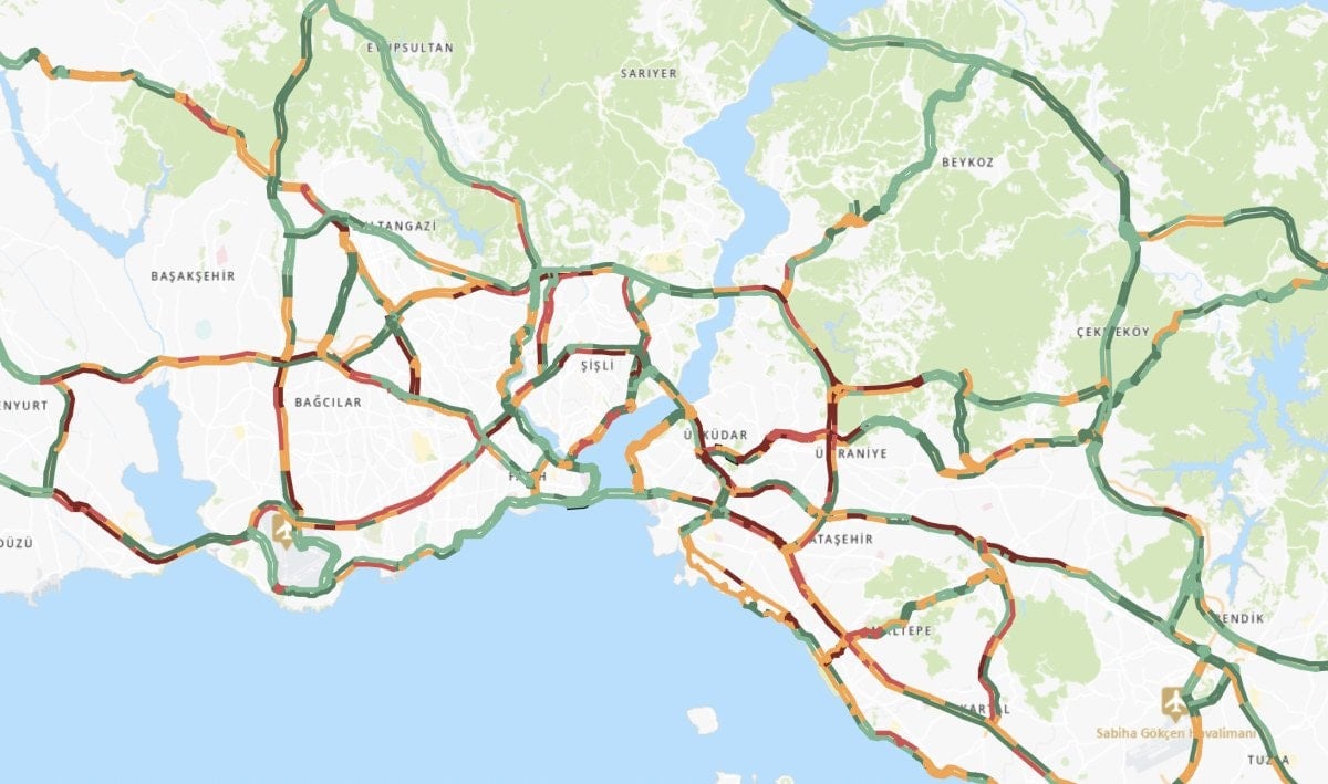 İBB trafik uygulamasına göre saat 08.50 itibarıyla trafik yoğunluğu yüzde 74 olarak ölçüldü.
