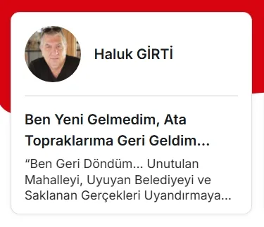 Ben araştırmacı gazeteci Haluk Girti olarak artık buralardayım. Bu mahallelerde büyüyen sorunları yazmazsam bu kalem bana haram olsun.
