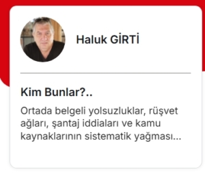 Ben şahsım adına konuşuyorum Haluk GİRTİ olarak, benim adım böyle bir çok yolsuzluk, rüşvet yada haksızlıklarla anılacak ben halkın içine çıkıp halkla sohbet edeceğim mümkünatı yok olmaz yada olamaz, suç teşkil edildiyse ve benimde bu suçlamada ismim zikredilse bırakın mevki ve makamı istifa etmekten ziyade ülkeyi terk ederim. Bunlar nasıl insanlar inanın onların yerine ben utanıyorum. Bunlarda hakikaten ne vicdan nede utanma arlanma duygusu var. Bunların dini imanı makam koltuk ve para yani servet olmuş. Allah ıslah etsin demek istiyorum ama diyemiyorum. Bunların ıslah olmaya da niyetleri yok Allah korkuları ise hiç yok.