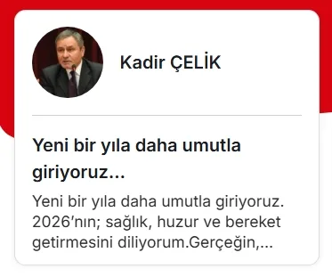 2026’nın; sağlık, huzur ve bereket getirmesini diliyorum.