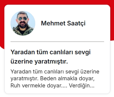 Yaradan tüm canlıları sevgi üzerine yaratmıştır. Beden almakla doyar, Ruh vermekle doyar….