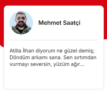 Atilla İlhan diyorum ne güzel demiş; Döndüm arkamı sana. Sen sırtımdan vurmayı seversin, yüzüm ağır gelmesin.