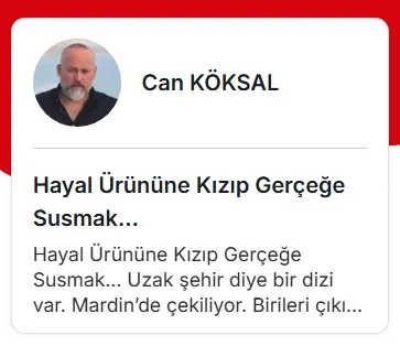 Uzak şehir diye bir dizi var. Mardin’de çekiliyor. Birileri çıkıp diyor ki: