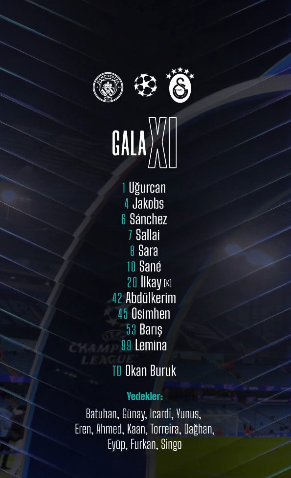 Manchester City – Galatasaray maçının ilk 11’leri…