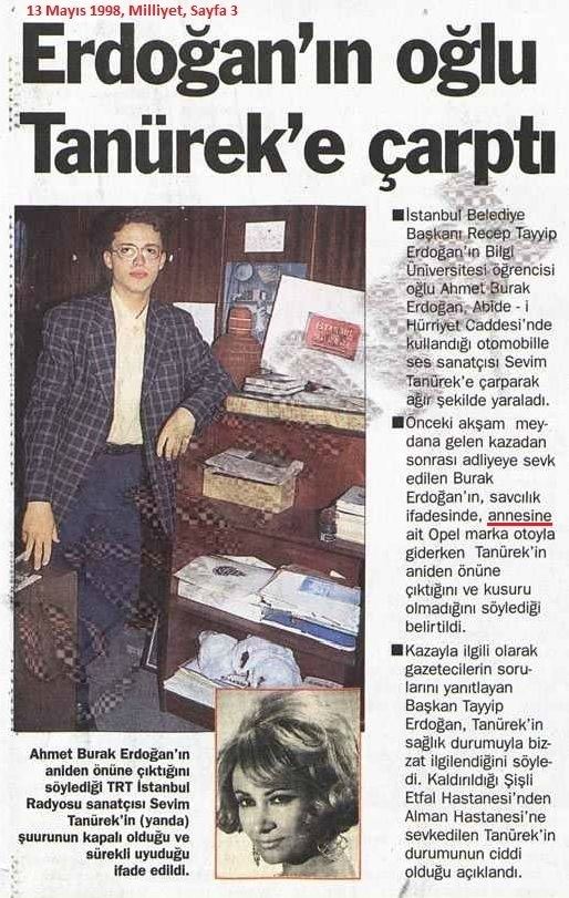 Burak Erdoğan duruşmaya çıkmadan bir süre önce Sevim Tanürek’in oğlu Cavit Ürek ve eşi Ahmet Ürek dilekçeyle mahkemeye başvurarak Erdoğan hakkındaki şikâyetlerini geri aldı. Kazadaki sürücü ihmali dava konusu oldu, ancak ölen Sevim Tanürek 8’de 8 kusurlu bulundu. Kazayı yapan sürücü Ahmet Burak Erdoğan’ın, olay tarihi itibarı ile ehliyetsiz olduğu iddiaları vardır. Burak Erdoğan ise kusursuz bulundu. Mahkeme sürücü genci 3 ay hapse mahkûm etti, ancak ceza daha sonra para cezasına çevrildi. Ahmet Burak Erdoğan hakkında kusursuzluk raporu veren Adli Tıp Kurumu İhtisas Dairesi’nin başındaki Eyüp Çakmak, Adalet ve Kalkınma Partisi (AK Parti) iktidarında Türkiye Denizcilik İşletmeleri (TDİ) A.Ş.’ye genel müdürü olmuştur. Sevim Tanürek Zincirlikuyu Mezarlığına defnedilmiştir.