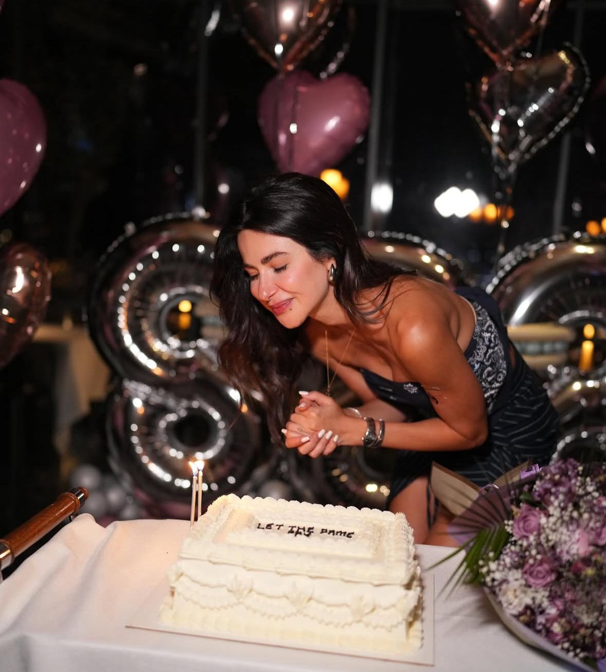 Pastasında “LET THE FAME PAY” (Şöhret bedelini ödesin) yazılı mesaj dikkat çekti ve sosyal medyada kısa sürede ilgi topladı. Mumları üflemeden önce dilek tutmayı ihmal etmeyen Cavadzade, gece boyunca neşeli anlar yaşadı.