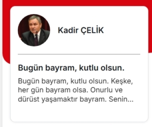 Kadir Çelik, köşe yazısında bayramların sadece birkaç günden ibaret olmadığını, asıl bayramın onurlu ve vicdanlı bir yaşamla mümkün olabileceğini vurguladı. “Senin olmayana el sürmemek, hak yememek, adil olmak… Vicdanlı insan zaten bayramıyla doğmuştur,” ifadeleriyle toplumun özlediği değerlere dikkat çeken Çelik, her günün bayram gibi yaşanmasını diledi.