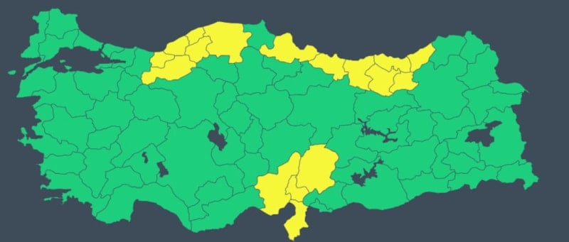 Sarı kodla uyarılan iller şu şekilde sıralandı;